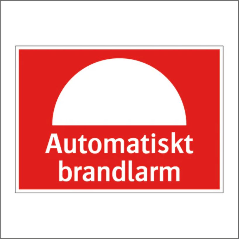 Skylt med text Automatiskt brandlarm.